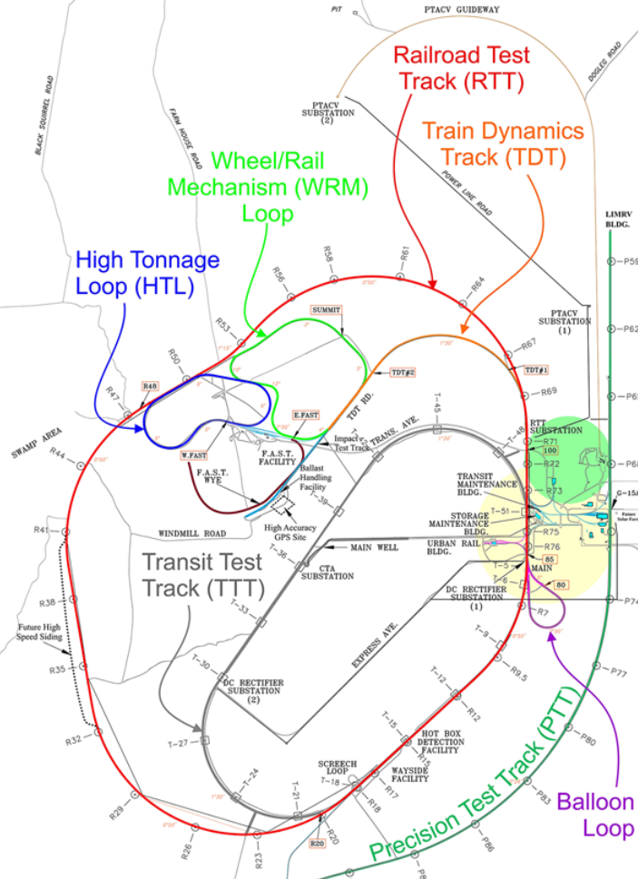 The full scope of the Transportation Technology Center (TTC) – Most of the GCT tests were conducted on the Railroad Test Track (RTT)